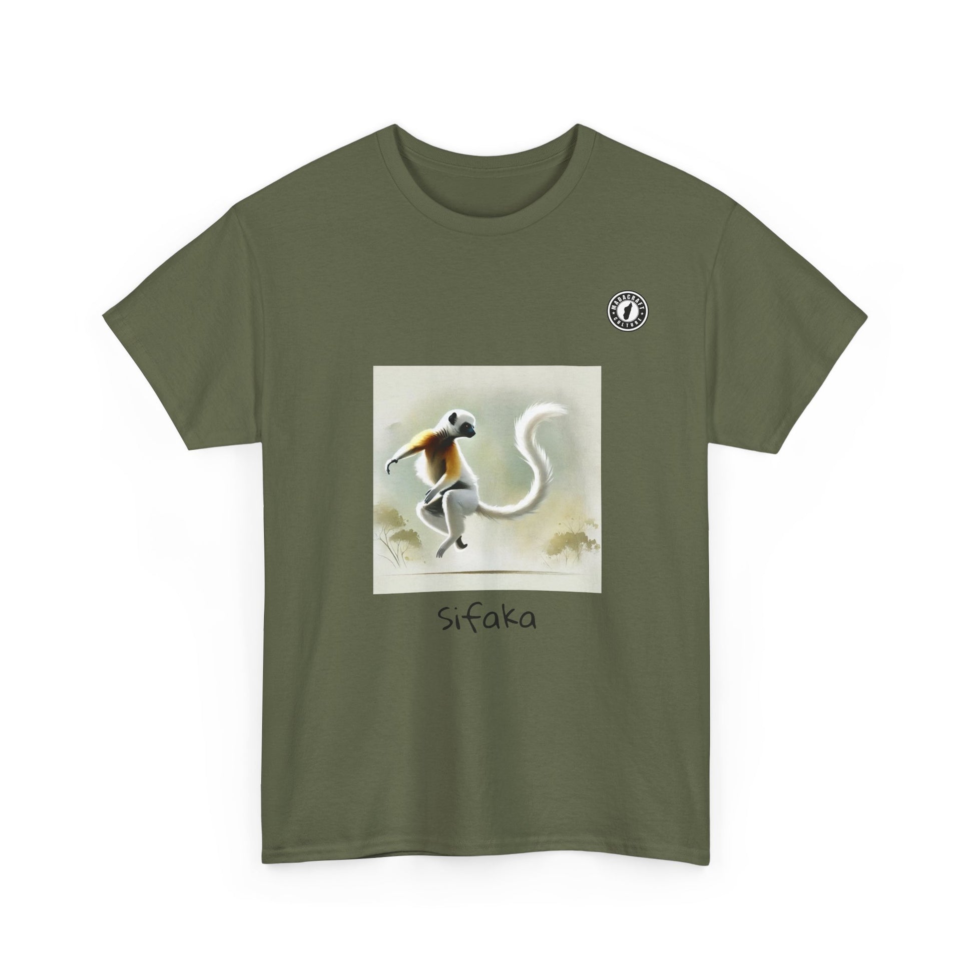 This t-shirt features the famous Sifaka, Madagascar's iconic lemur known for its unique dance 🦘✨. With its detailed design and high-quality print, this t-shirt captures the energy and agility of this fascinating animal.
