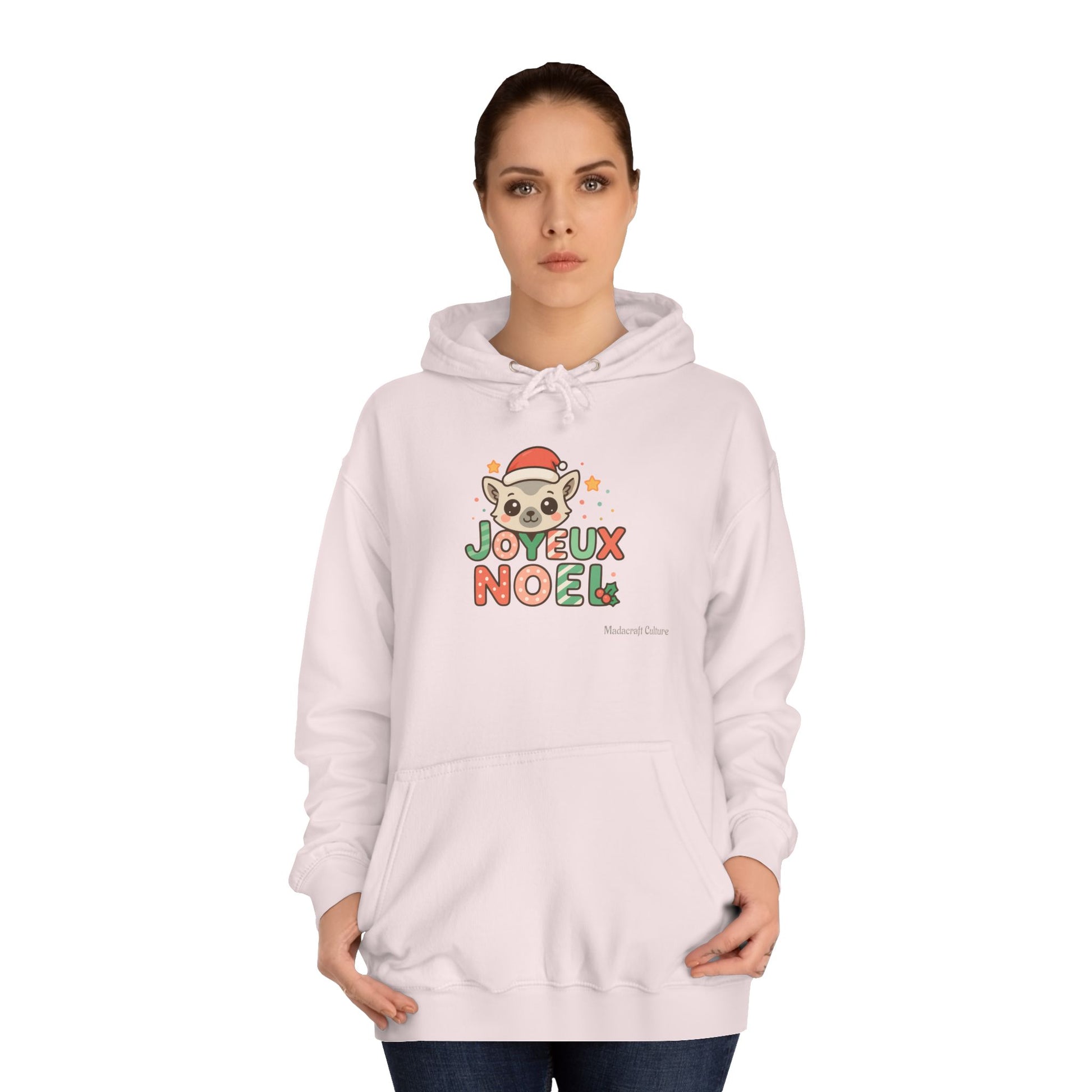 Ce sweat festif met à l'honneur un lémurien adorable, stylisé en version kawaii, avec son bonnet de Père Noël et son regard malicieux !
